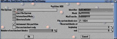 | Osioinnin jälkeen boottasin koneen ja pika-alustin kaikki osiot. Aloitin tiedostojen kopioinnin vanhoilta levyiltä uudelle ensin Filemasterilla, joka kuitenkin kaatuili monta kertaa - olisiko sillä jotain ongelmia ison levyn kanssa. Ainakin se näytti vapaan tilan aivan pieleen ja käyttöprosentit olivat joillakin osioilla miinusnerkkiset. Kyllästyneenä Filemasterin sekoiluun kopioin loput tiedot ensin Workbenchistä hiirellä, mutta huomasin jossain vaiheessa, etteivät työpöydällä olevat ikonit eivät tulleetkaan mukaan.