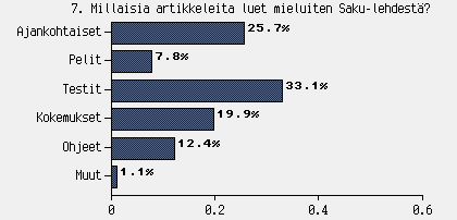7. Millaisia artikkeleita luet mieluiten Saku-lehdestä?