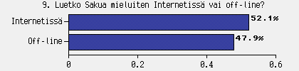 9. Luetko HTML-Sakua mieluummin suoraan yhdistyksen kotisivuilta Internetissä vaiko pakattua versiota off-line-tilassa?