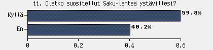 11. Oletko suositellut Saku-lehteä ystävillesi?